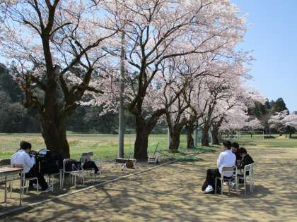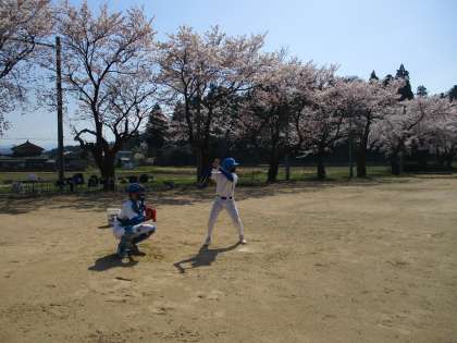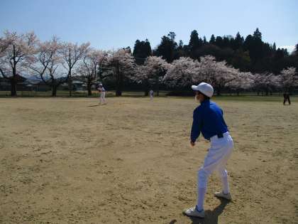 お花見昼食の後、明日の試合に向けて練習に励んでいました。