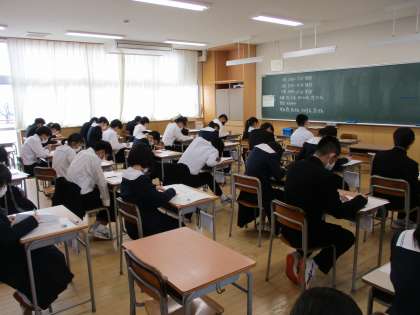 適度な緊張感のもと、学力調査に臨んでいます。上から1組、2組の様子です。