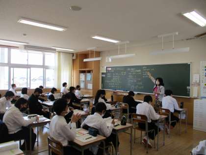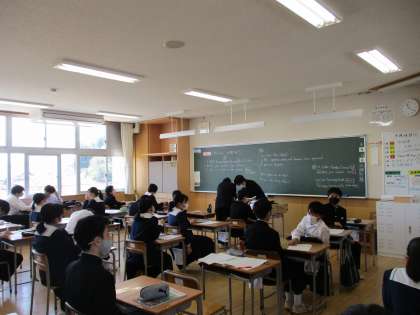 上から1組英語、2組保健体育、3組数学の授業の様子です。