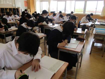 2学年では、城中タイムに新聞のコラムの書き写しを行いました。落ち着いて丁寧な字で書くことができていました。