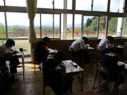 教室の窓から見える景色に心が落ち着き、城中の環境のよさを感じました。