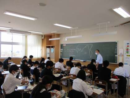 1組数学、2組理科、3組社会の授業の様子です。