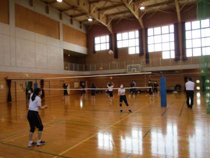 体育館ではバレーボール部と卓球部が元気に活動していました。
