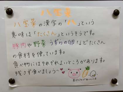 八宝菜の八は具が8種類ではなく、たくさんという意味だそうです。