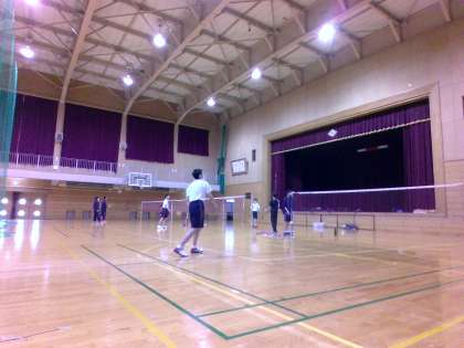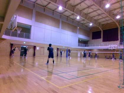 体育館では、男子バレー部と男子バドミントン部が元気に活動していました。