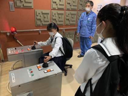 Bコース クレーン操作体験中! もちろん、レバー操作だけですけど。