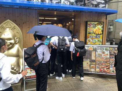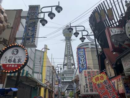 Bコース 昼食会場の鶴亀屋さんに到着しました。通天閣近くのお店です。