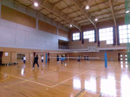 体育館では、女子バレーボール部と男子バドミントン部の1、2年生が元気に活動していました。