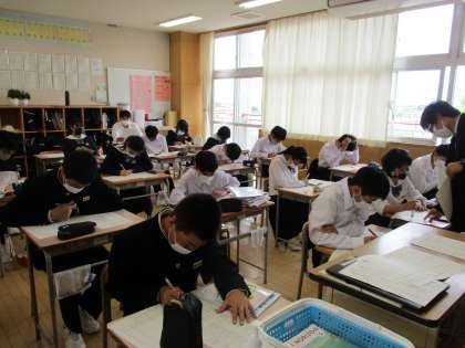 2学年では、中間考査に向けて、学習計画を立てたり、メディアコントロールの目標を設定したりしました。「学習は団体戦」を合い言葉に、学年全体で頑張ろうとする姿が見られました。