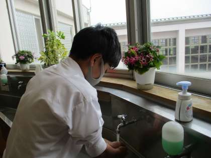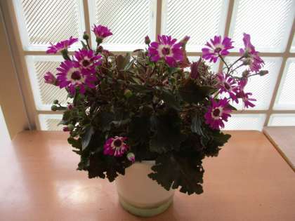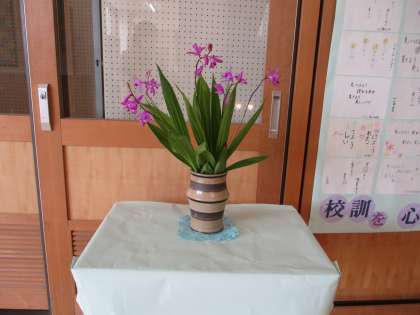 3月から育てているサイネリア第2弾や、紫蘭(写真下)の鮮やかな色から、城中生は元気をもらっています。