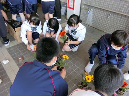 各学級に10鉢、余った分は花壇に植えました。