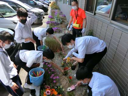 ガザニアの花言葉は、「誇り」です。校訓にピッタリですね。