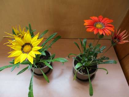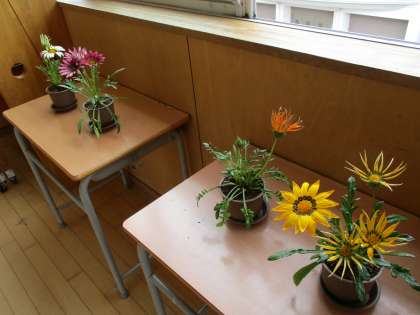 廊下には、先日植えた色鮮やかなガザニアが誇らしく咲いています。