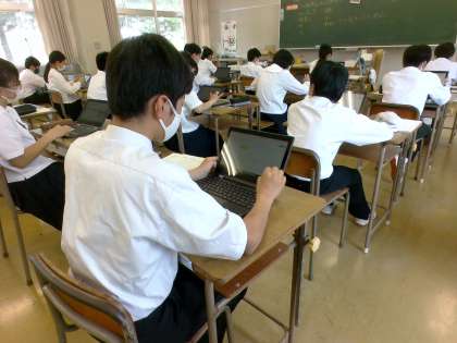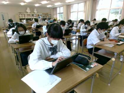 1年2組は、自分たちが暮らす地域の特色等をモチーフにした文様づくりをしています。端末機器上でアイディアスケッチしているところです!