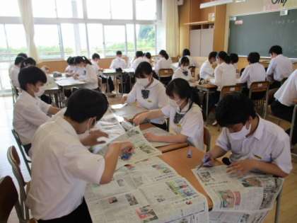 班での交流を深めるために「新聞文字探し選手権」を行いました。完成までの時間を競い合いながら楽しく活動していました。