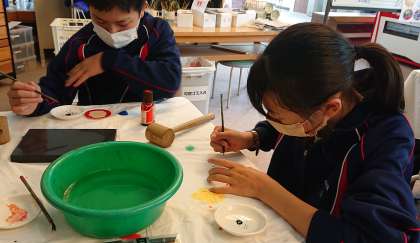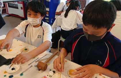 刻印棒で模様を描いたあとは、染料で色付けします。