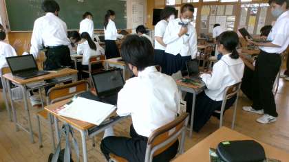 1年3組は、城中校区や富山市の特産物等をモチーフにした文様づくりをしています!