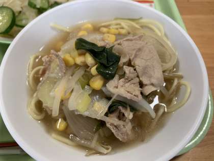 具沢山のラーメン美味しい。しかし、私は汗沢山。