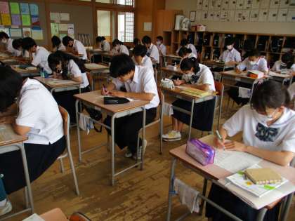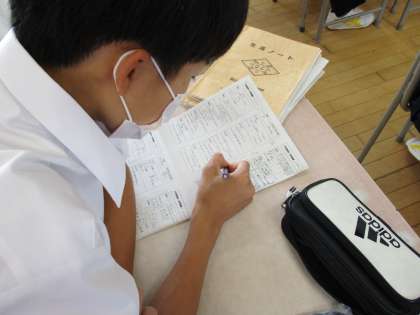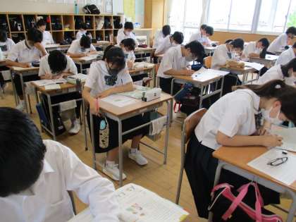 2学年では、城中タイムに学年生徒会が作成した予想問題に取り組みました。