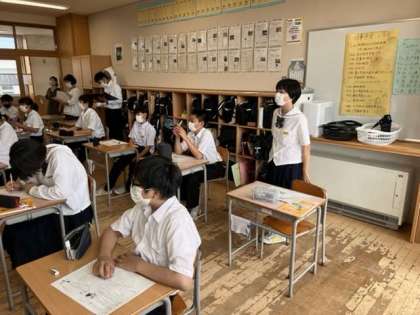 和算と連立方程式を用いた課題で、生徒たちは一生懸命考えていました。