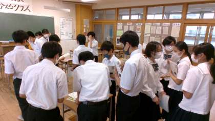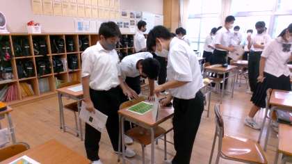 1年2組は「生活をいろどる文様」で地域のモチーフから繰り返し文様を制作しました!