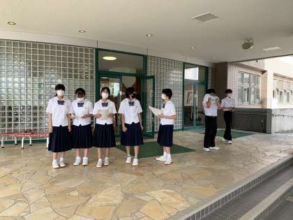 2学年生徒会+卓球部による挨拶運動が始まりました。