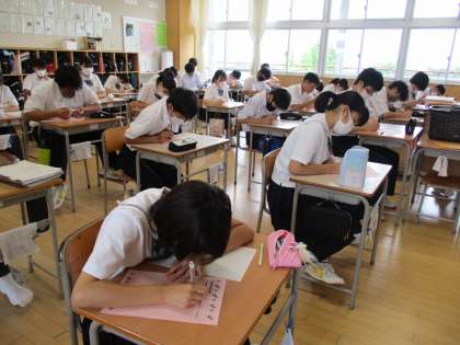 2学年では、1学期の振り返りを行いました。生活面と学習面について、4月からの自分を見つめ直していました。