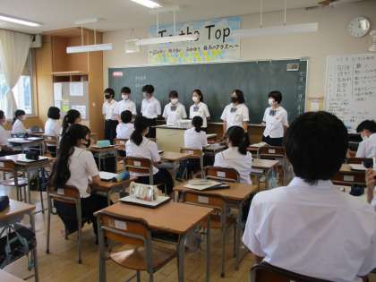 2学年では、体育大会に向けて、実行委員、学年リーダー、デコレーション係等の選出を行いました。積極的に立候補する姿が見られました。