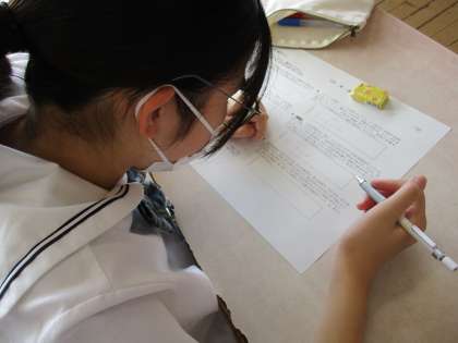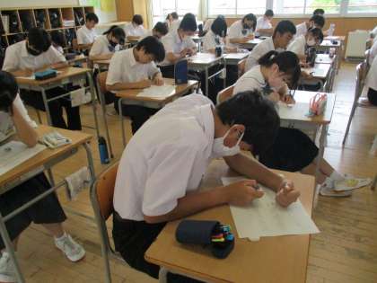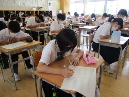 城中タイム(朝活動の時間)に期末考査確認テスト(数学科)を実施しました。期末考査に出題された連立方程式の文章題を再度解き、力を試しました。