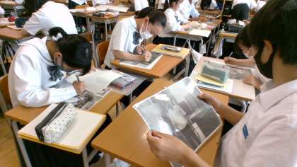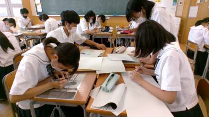 3年2組は「自画像」制作3時間目!折り返しです!仲間の多様な表現に刺激を受けながら制作しています!