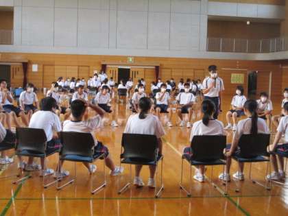 3学年では、4限に1学期の学年レクリエーションを行いました。フルーツバスケットとドッジボールをして楽しみました。