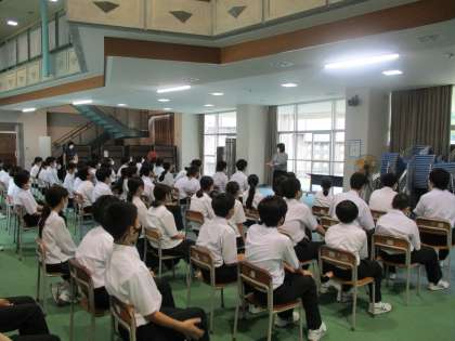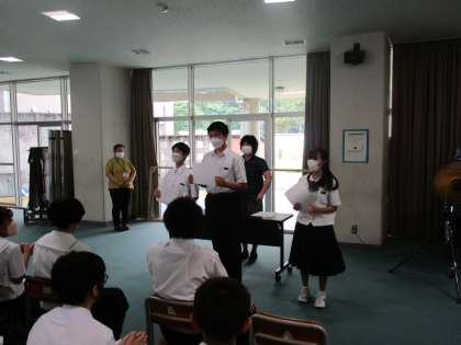 夏休みの生活や学習、部活動、交通安全について確認したり、各学級のMVP受賞を行ったりしました。充実した夏休みにしたいですね。