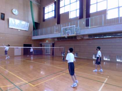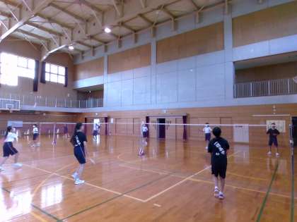体育館の午前前半は、男女バドミントン部が活動していました。