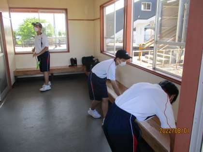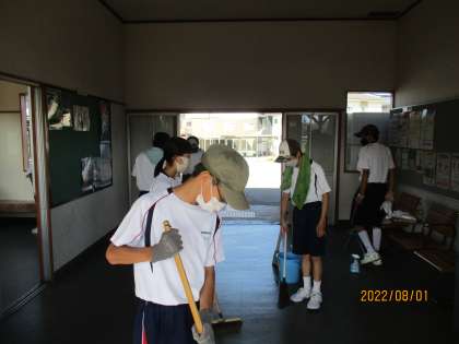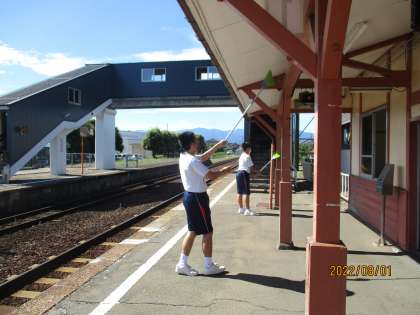 千里駅では、待合室や駅周辺の清掃、草むしりを行いました。