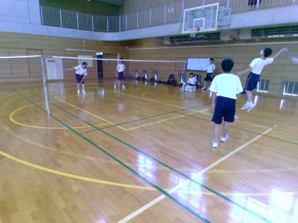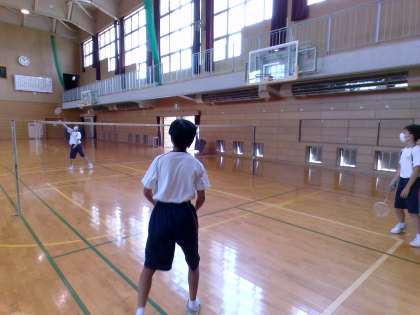 男子バドミントン部の様子です。試合形式の練習をしていました。