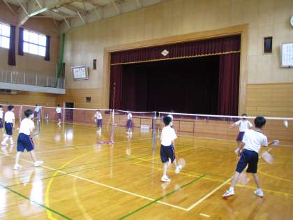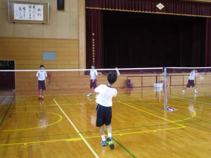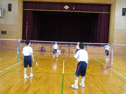 男子バドミントン部の様子です。こまめな水分補給、適度な休憩を取りながら元気に活動していました。