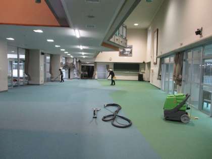 暑い中、業者の方がカーペット清掃をしてくださっています。ありがとうございます。感謝の気持ちを忘れず、使用しましょう。