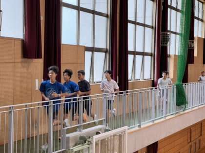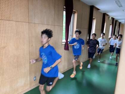 今朝は天候が悪かったため、室内でトレーニングを行いました。