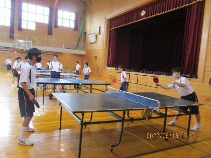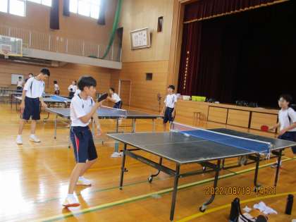 午後からは、体育館で卓球部が練習をしていました。9月に行われる新人大会に向けて、メンバー選考ためのリーグ戦を行っていました。