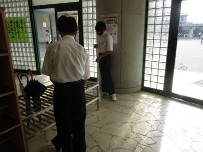 昨日、一昨日と清掃の時間がありませんでした。汚れている校内を自主的に掃除してくれる生徒の姿がありました。ありがとう。
