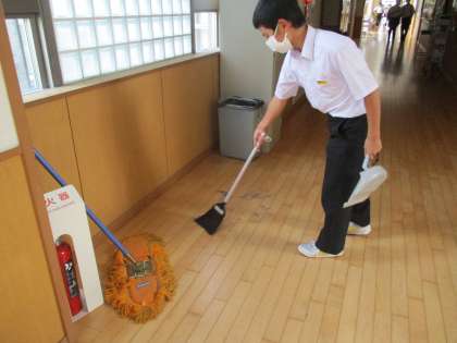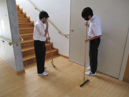 卓球部の生徒が玄関や階段、廊下を自主的に清掃を始めました。その姿を見た卓球部員ではない1年生も加わり、気持ちのよい朝を迎えることができました。