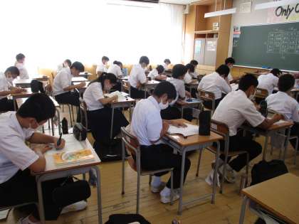 1、2年生は、黙々と学習に励んでいます。 写真上・・・1年生 写真下・・・2年生