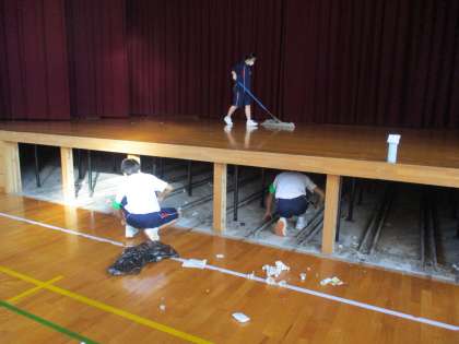事業所がお休みで学校で活動している生徒たちは、体育館の隅々まで清掃してくれました。普段手入れをしない箇所まで丁寧に作業してくれました。