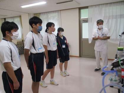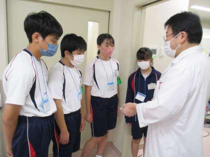 検査技師さんや臨床工学技士さんのお話を真剣に聴いていました。しおりや名刺をつくっていただき、ありがとうございます。