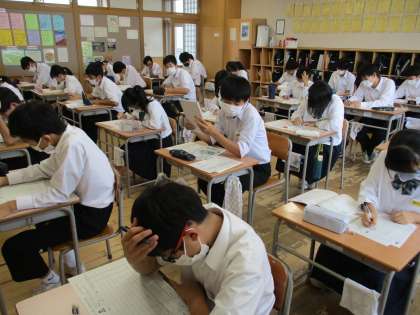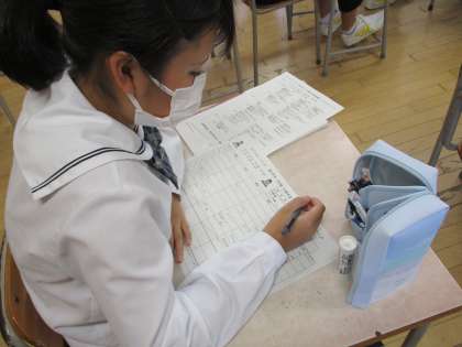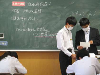 2学年では、中間考査の範囲表を配付しました。学習目標とメディア目標を設定し、テスト勉強の計画を立てました。