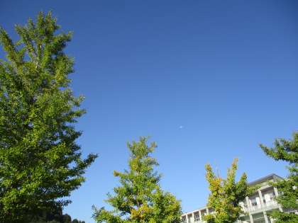 おはようございます。澄み渡る青空の朝になりました。白くなった月が、まだ空に残っています。