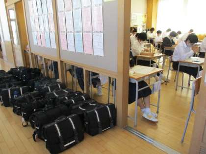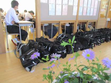 2学年では、中間考査中はリュックを廊下に並べています。整然と並べることが習慣となっています。