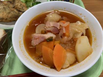 トマト煮の中から隠れていた白花豆がたくさん出てきました。