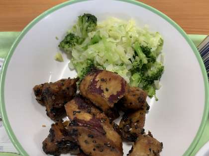 花野菜サラダにオリーブ油にさとう、塩こしょうで味が調えてあり美味しい。