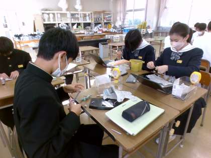 2年2組は新聞紙彫刻の着彩です!まだ色塗りに入れない人は頑張れ!